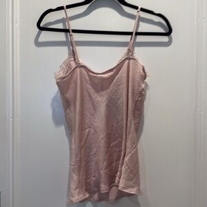 Chic blush cami with delicate lace accents. Ideal for versatile styling.