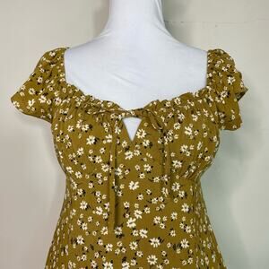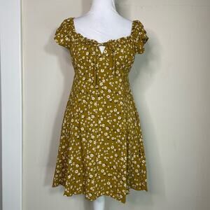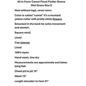 All in Favor Camel Floral Flutter Sleeve Mini Dress Size S
