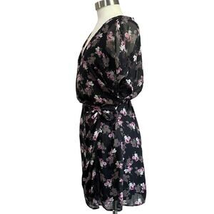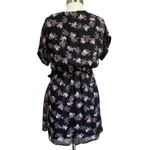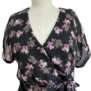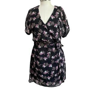 All in Favor Floral Print Black Mini Wrap Dress Size Small