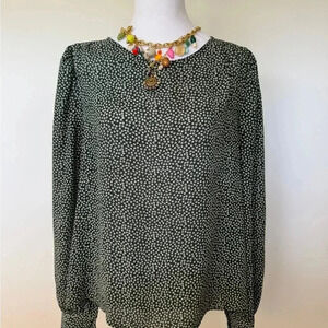 🌿 Effortlessly chic and playful, this All in Favor green blouse size Large features a modern polka dot print that’s perfect for any occasion. Lightweight and breezy, it’s an essential piece for year-round styling.