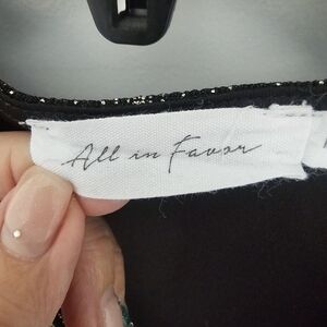 Shine bright in this stunning black metallic midi dress from All in Favor, size Medium. Features shimmering gold and silver stripes, a flattering surplice neckline, flutter sleeves, and a tie waist. Perfect for parties, weddings, or any special night out. Fully lined for comfort with soft stretch. Excellent condition!