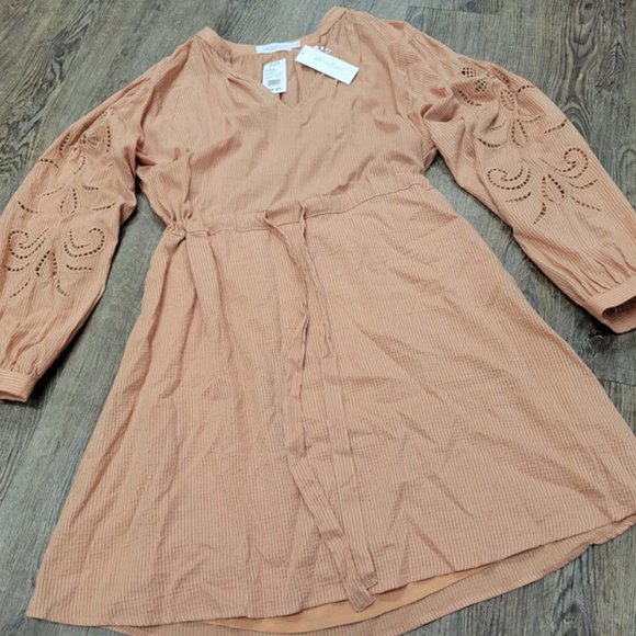 All in Favor NWT Pecan Large Eyelet Sleeve Beige Long Sleeve Summer Spring Dress