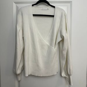 All in Favor Rib Bishop Sleeve Surplice Ribbed Sweater