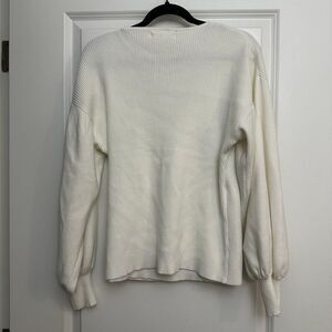 Voluminous bishop sleeves with a finer rib bring trend-savvy style to this drop-shoulder sweater with a surplice V-neck.