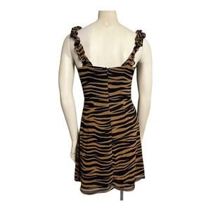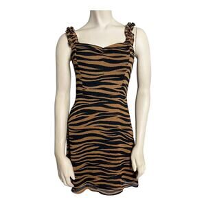 All in Favor Ruffle Straps Tiger Print Mini Dress Brown/Black Women's XS Party