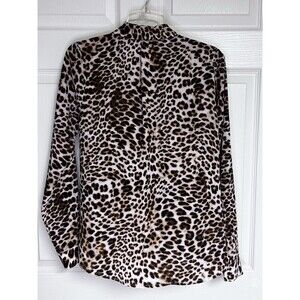 All in Favor Shirt S Cheetah Print Twist Front Button Up High Low Hem Blouse