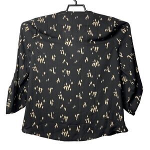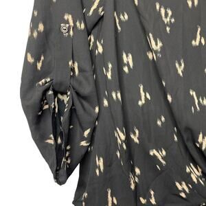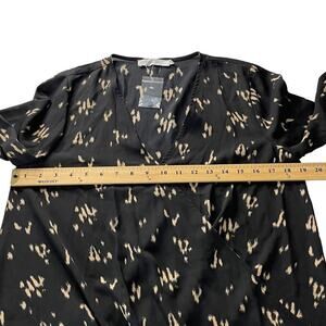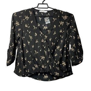 All in Favor Womens Print Faux Wrap Top Front Blouse Small Black Taupe Smudge