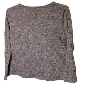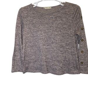 All in Love women's Large subtle pink grey marled knit top button accents boxy