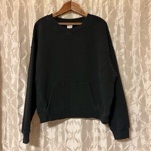 All in Motion Black Quilted Crewneck Pullover Sweatshirt Kangaroo Pocket