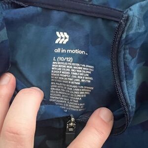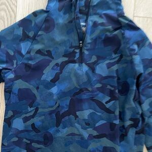 Blue camouflage top with a quarter-zip. Ideal for active wear.