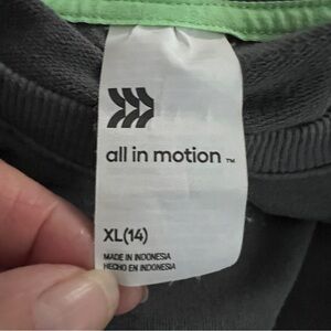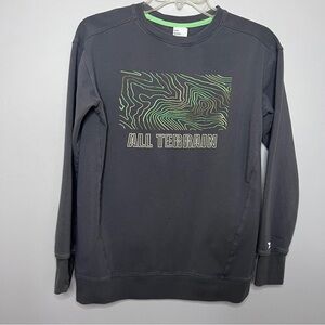 All in Motion Boys Gray Crewneck Sweater with Bold Green Design Size 14 EUC
