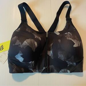 All in Motion High Support impact Black gray Print mesh camo Zip Front Bra 36DD