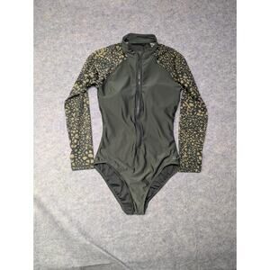 All in Motion Long Sleeve Mock Neck 1-Piece Rashguard Sun Protection Swimsuit, M
