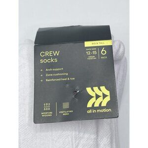 All in Motion Mens Crew Sock 3 Pairs WHITE Arch Support Zone Cushioning 12-15