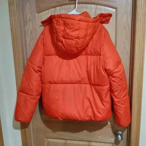 This item is brand new with tags. Items ship from a smoke free home. The tag says this is a red color but it is very much closer to the orange side of red in my opinion. This is the warmest jacket selection from all in motion and is a heavier weight coat. The hood is detachable and the pockets zip.