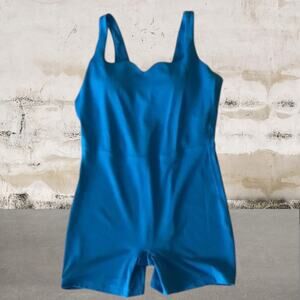 All in Motion NWT Women's Brushed Sculpt Rib Short Active Bodysuit Blue Large