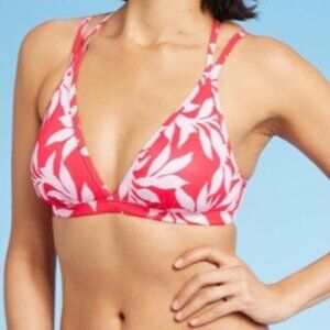 All in Motion Red Floral Triangle Bikini Top Size Small