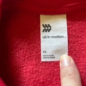 Keywords: All in Motion, Red Sweatshirt, Button Sweatshirt, Pullover Top, Crewneck, Casual Top, Athletic Wear, Activewear, XS Sweatshirt, Womens Sweatshirt, Sporty Sweatshirt, Comfortable Sweatshirt