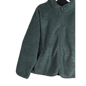 All in Motion Sherpa Jacket Olive Green L Full Zip Pocket Relaxed Fit Fuzzy Cozy