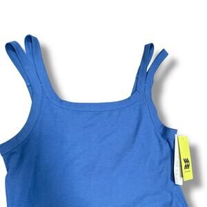 All in Motion Tank Top Womens Small Ribbed Hip Length Tight Fit Cobalt Blue