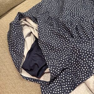 NWT. So cute and comfortable! Kids size 14, tank romper with spandex attached brief inside. Perfect for exercising or daily wear. Navy blue with small white polka dots. Retail $20, selling for $12.
