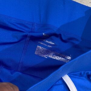 Vibrant blue athletic shorts with white trim. Ideal for workouts and casual wear. Comfortable and stylish design. High rise. See all listed details on the tag. NWT.