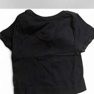 Sleek and comfortable black tee. Perfect for everyday wear. Soft fabric with a flattering fit. Ribbed material cropped. New with tags.