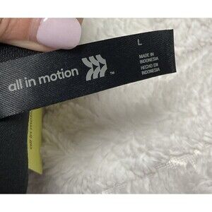 Introducing the All in Motion women's seamless sports bra in black and white, size L. This bra is perfect for any performance or activity, whether it be activewear, casual wear, or travel. It features a solid pattern, spaghetti straps, and a pullover closure for ultimate comfort and support.