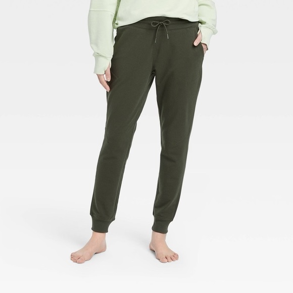 All in Motion Women's Small Mid-Rise French Terry Joggers, Olive Green