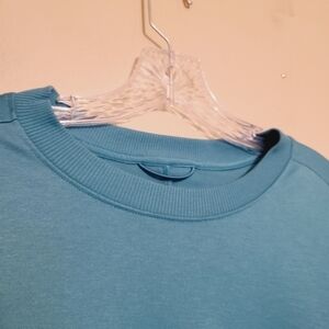 Women's athleisure long sleeve tee by All in Motion, size large. Turquoise pullover is a polyester, rayon, and spandex fabric blend. Lighting is weird, but true color is that in the cover pic. Excellent pre-owned condition; no flaws.