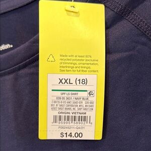 All in Motion XXL Boys 18 Navy Long Sleeve Athletic UPF Shirt