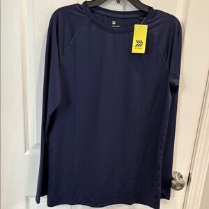 Comfortable stretchy navy long sleeve athletic shirt. Perfect for workouts or casual wear. Almost feels like a rashguard material?