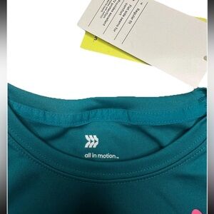 Get your little girl ready for any active occasion with this All In Motion Turquoise Green Graphic Tee. The shirt is made of 100% polyester and has a short sleeve length with a pullover closure. has an athletic fit for comfortable movement.