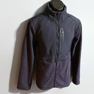 Description: This jacket boasts two distinct panels of material, one side nylon and the other side polyester with a cozy wool-like appearance. It provides a perfect combination of sporty and comfortable style, complete with an upper zipper breast pocket and two side pockets with zippers. This jacket is designed to keep you warm and stylish during both fall and winter months.