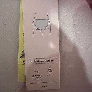 These are a women’s size small, coral color, bikini bottoms. It has medium coverage and a UPF of 50+ it is chlorine resistant spandex. It is brand new with tags. It is from a smoke-free home.