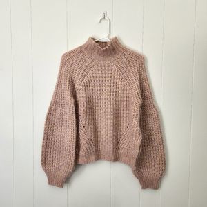 All in Favor Pink Puff Sleeve Sweater Nordstrom Mock Neck