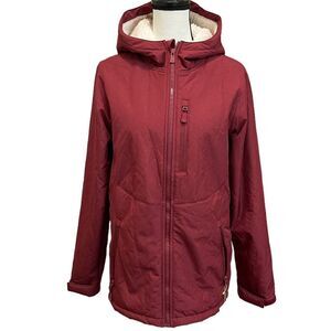 Softshell sherpa jacket made from warm, 100% recycled polyester with soft sherpa interior. Wind- and water-resistant construction with front full-length zipper, zippered side pocket and hood for convenience and warmth. Sizing: Mens