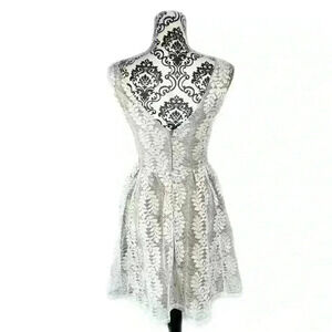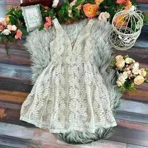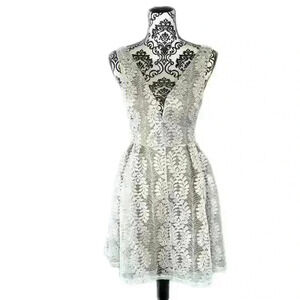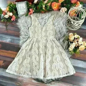 All of My Heart white Lace Skater Skirt Deep v-neck Dress
