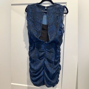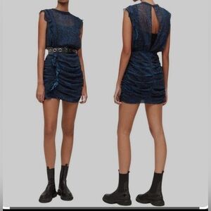 All saints Hali Tamora Snakeskin Print Dress open back ruched sheer