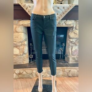 All saints STAGG BGQDIE forest green coated low rise cropped skinny jeans w30