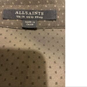 All saints dress size 10 tiiered waist has drawstring. Brown Polk dot.