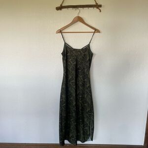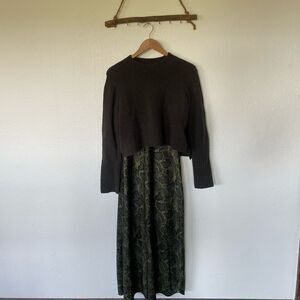 Green all saints silk snake print long slip with green cropped sweater