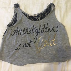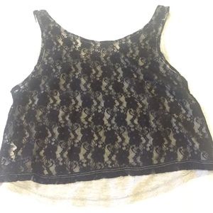 Great condition! Really cute shirt, cute logo and black lace back. No stains, no rips. Comment if you have any questions :)