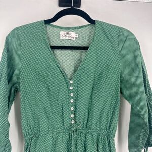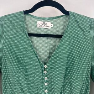All the Wild Roses Women's Polka Dot Boho Tiered Breezy Midi Dress Green Size 8