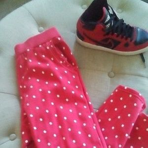 Cream hooded faux leather jacket, nike tennis shoes size 6, and children's place sweatpants