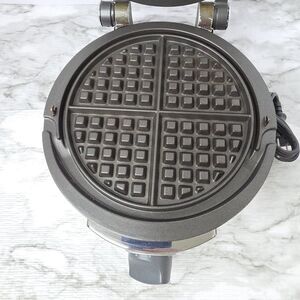 All-Clad 6071 Stainless Steel Round Waffle Maker, premium kitchen appliance for crisp, golden waffles with deep pockets. Tested and fully functional. Durable stainless steel housing with nonstick plates for easy release and cleanup.