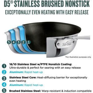 PROFESSIONAL PERFORMANCE WITH EVERYDAY CONVENIENCE, D5 Nonstick patented 5-ply is fully bonded for exceptional even heat and wrap resistance. The high-quality nonstick brings a long-lasting and easy release to cook with less fat.