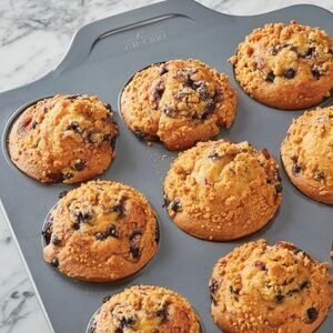 This gray non-stick muffin pan is an essential addition to any kitchen, offering a reliable bakeware solution for creating perfectly baked muffins or cupcakes. Its durable construction ensures even heat distribution, while the non-stick surface allows for easy release and cleanup. Ideal for both casual bakers and seasoned chefs, this pan is designed to meet all your baking needs.