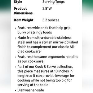 All-Clad Stainless Steel 9.5" Serving Tongs