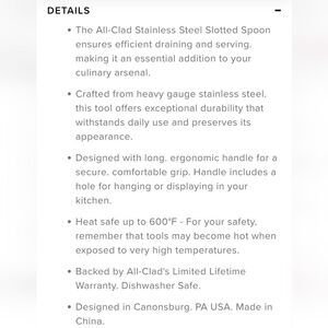 Elegant stainless steel slotted spoon. Perfect for serving and cooking.